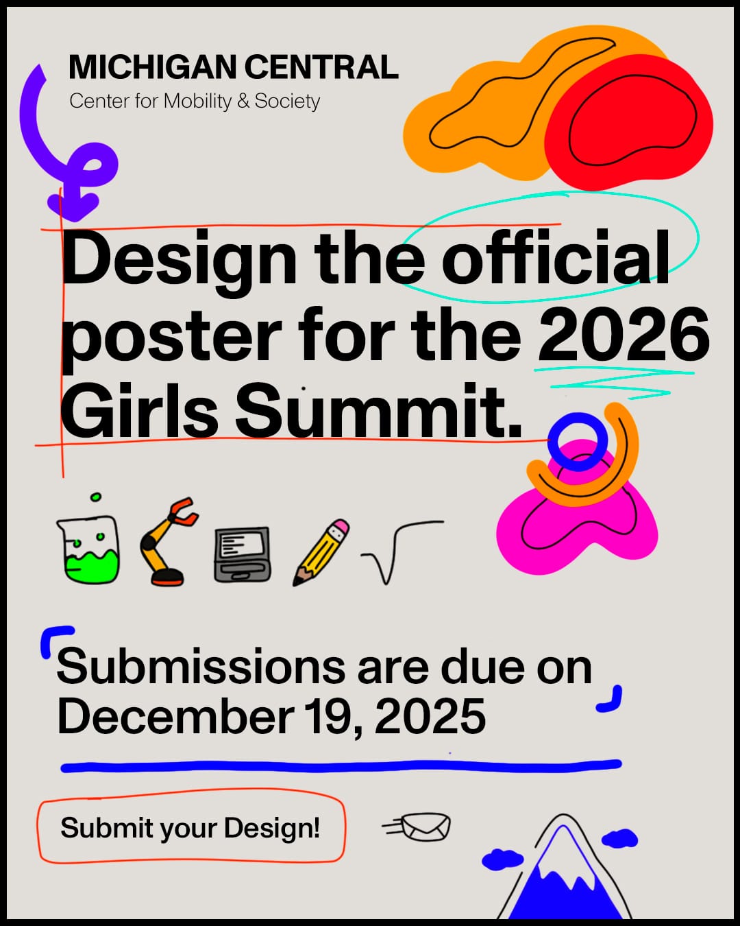 Michigan Central invites young graphic designers and artists to submit poster designs for Girls Summit, our one-day event celebrating girls interested in STEM and art taking place in March 2026.