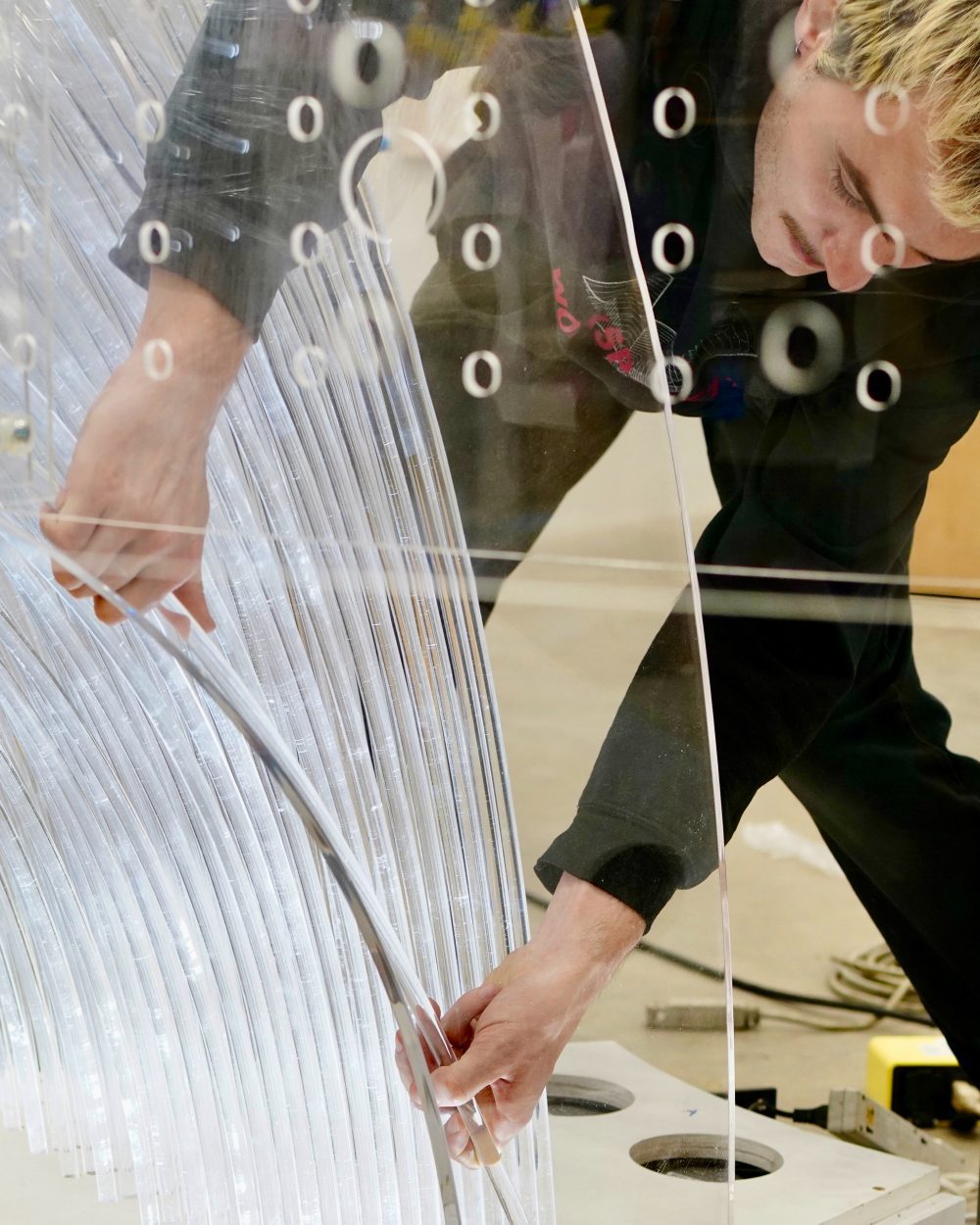 Reddymade’s guiding principle is “form follows feeling,” a design ethos informed by neuroaesthetics, the study of how the brain responds to the design of our surroundings. The me + you installation invites visitors to speak in English a single-word vision of the future into the cloud base at designated points. Using AI technology, me + you acts as a translator to express back that word as a special pattern of light and color that shimmers across the structure, like a mandala, unique to each visitor. The artwork’s focus to assemble individual inputs into a collective expression supports the Art Program’s emphasis on open dialogue and engagement through artistic experimentation. With the opening of the Station, me + you further reflects Michigan Central’s commitment to generate a vibrant space for creative innovation in Detroit.
