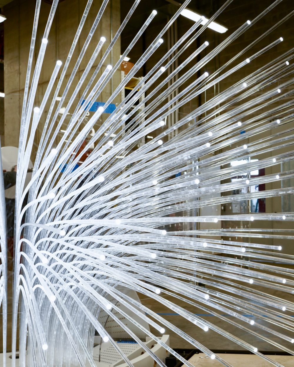 An interactive AI light sculpture, me + you represents the coevolution between human wisdom and technological advancement—a primary theme of the Michigan Central Art Program. Originally created by Reddymade’s founder Suchi Reddy in 2021, this new iteration of me + you is a transformative experience that responds to the distinct historical architecture of the Station’s South Concourse.